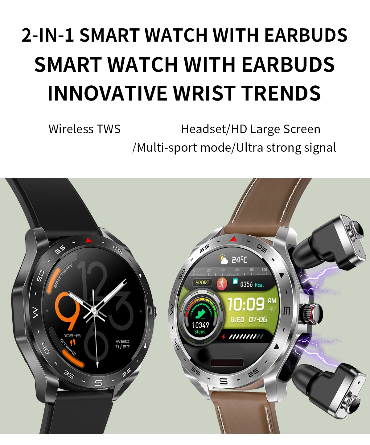 Full in-ear wearing, painless and comfortable. Perfect sound quality, two-way noise reduction, clearer calls, HIFI 9D sound quality, AI voice SIRI wake up. The headset is put into the watch compartment storage that is charging, take it with you, put it in the watch compartment for easy storage, the headset is stored in the watch that is charging.