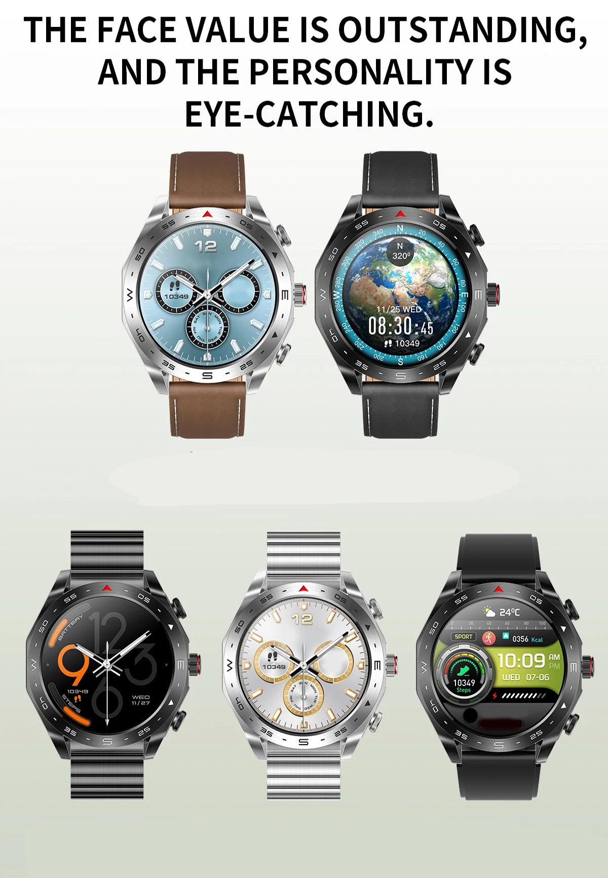 SOUMETIN smartwatch adopts TPU high-grade high service sports wind strap, full circle full touch + mechanical button operation dual operation, 400mAH solid capacity large battery, strong endurance standby over 25 days. External playback up to 10 hours of powerful sound (maximum volume). Smart bracelet with 24 hours accurate detection of heart rate, blood pressure monitoring, blood oxygen monitoring, exercise monitoring, mileage, calorie consumption, message reminder, sleep record, message reminder, shaking control to take a picture, a large number of free dials to download and DIY dial making.